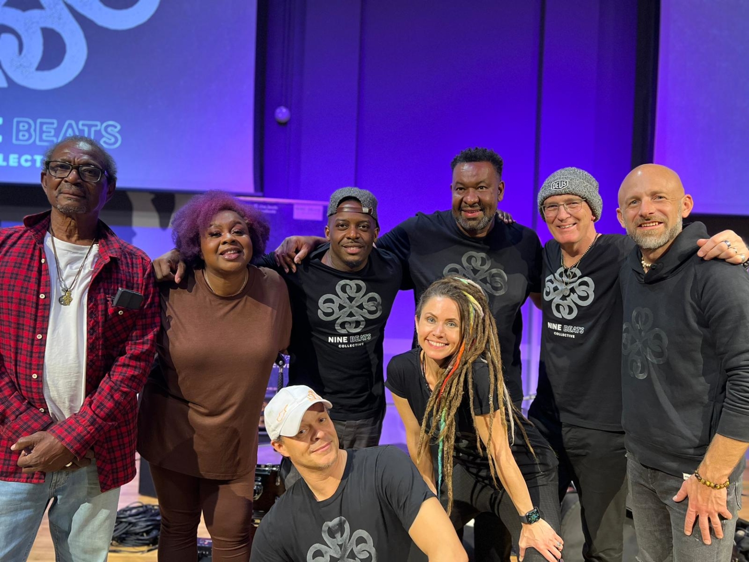 NINE BEATS Collective friends on this tour included Colarado singer/songwriter Heatherlyn, reggae artist Ban Okafor, vocalist Belinda Kae, producer and bassist Tony Bean, MD and keyboard player Martin Trotman, lead guitarist Rich Watson (making his Collective debut), storyteller and guitarist Steve Bassett, drummer Marcus Copeland – all herded by Rob Taylor.